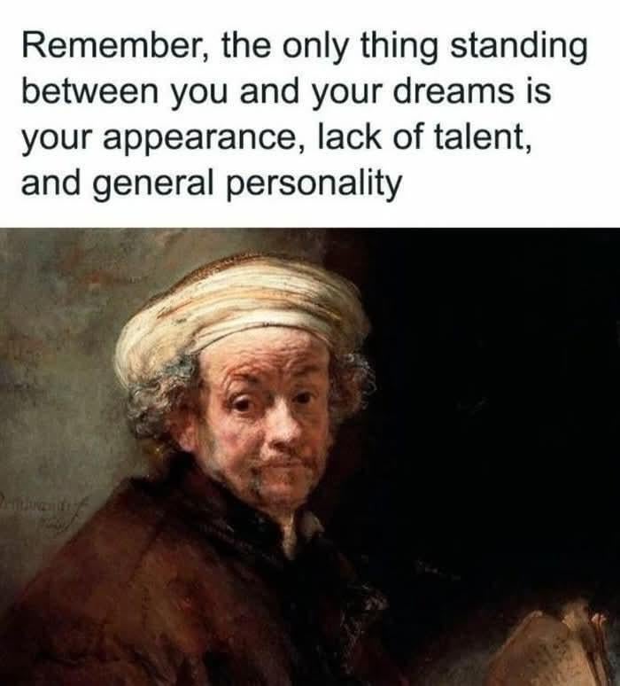 >>33873822>you build self esteem by overcoming struggles. setting goals and achieving themnot OP but goddamn I wish it worked this wayfor me it seems to be more like:>I have a goal I want to accomplish>I work to make it happen>by the time I make it happen, whatever I needed to learn to do it feels normal>nothing I do actually helps build self esteem, because by the time I did it, it's not impressive to me anymore