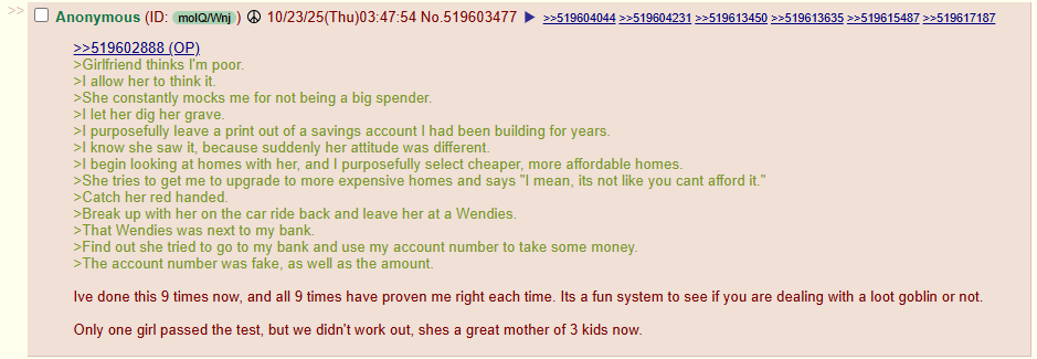 >>33844223I'm not talking about 18 year olds. I'm talking about women in their late 20s and early 30s.>>33844255On more than one occasion a woman has led me on for a free meal, Two of them were open about it. Also one used me to move some furniture for her.