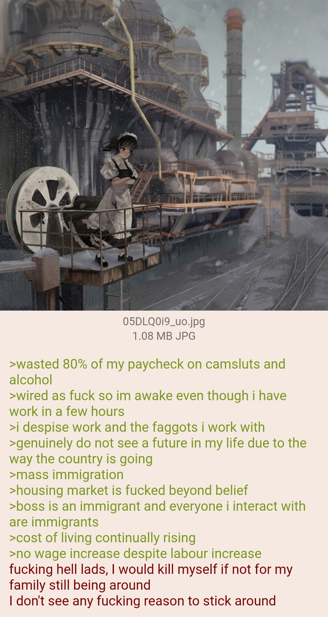 >>33847690misery cooking in my poorfag life, contemplating my suicide, etc.