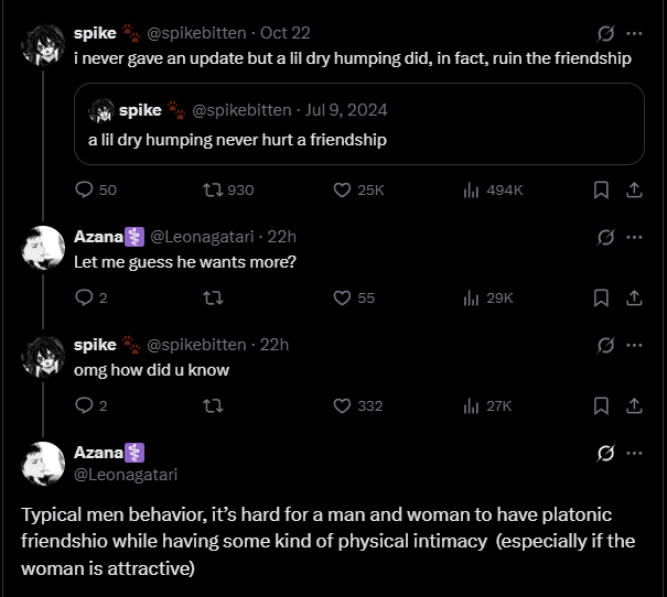 >>33847828I would assume so, yes.It's the same reason why women in relationships don't really have their own opinion and just regurgitate whatever their boyfriend says.