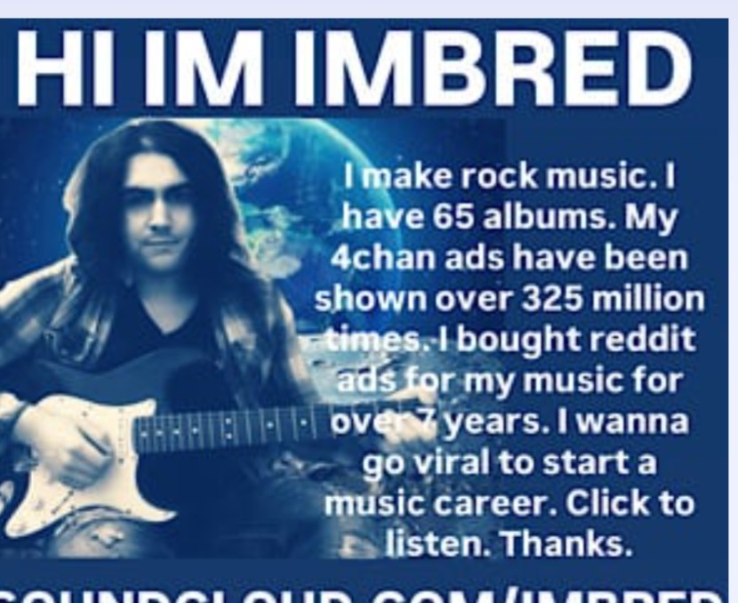 >>33848453How much does each impression cost? How much money has he sunk into this?And has anyone actually watched his music? No I won't do it myself.