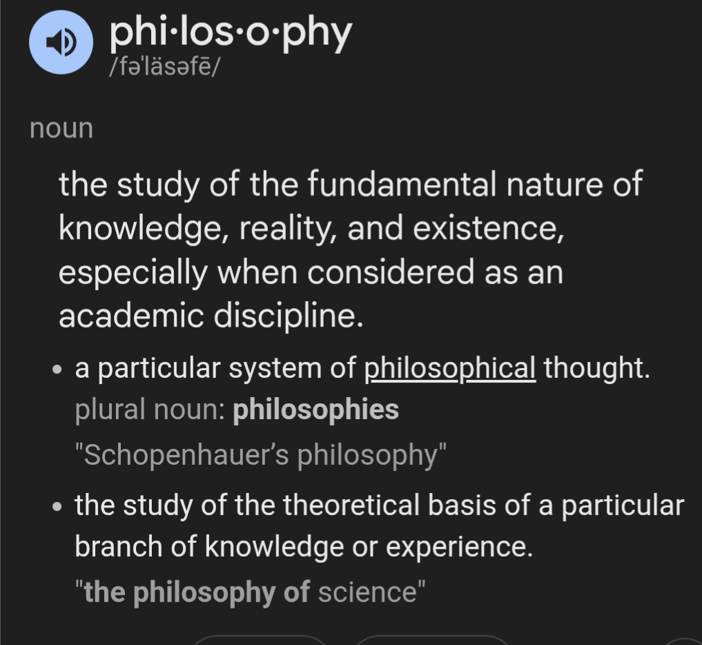 >>33868038NTA, so, basically, philosophy is ANY conscious work on your own worldview and we all philosophize by default while thinking? Are all of us at least casual philosophers, just like most of us can be called casual runners, swimmers and cooks?