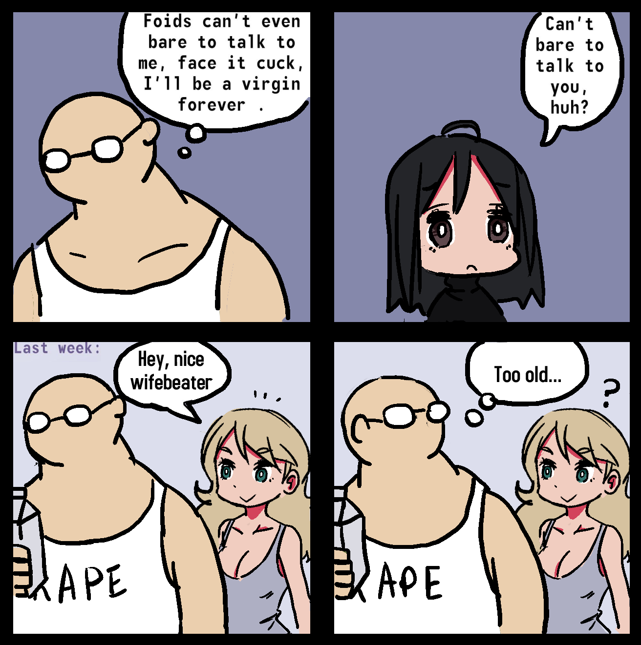 >>33897952>No. If anything it is worse because of the rise of trannies, which means if you're flat-chested, everyone will assume that you are a tranny. You just have a feminine face. You just really work out your ass in the gym. You must wear a waist trainer under your clothes. But no boobs, which means tranny.I've seen women called trannies. I'm surprised there aren't more women who resent trans people. Tall girls get called trannies and girls with flat chests. Guys catch strays because people will try to say we like a tranny if we like a girl who they think is a tranny, but isn't. A woman with a certain face will get accused as well. I've seen guys claim that European women look masculine compared to Asian women. It's just weird online bullshit and fetishizing. Getting accused of being gay because you think women are hot. Lol, it's all absurd.