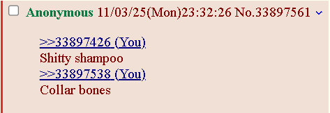 >>33897911Not a deal breaker but if you were my bf I'd put vaseline on for you when you slept.