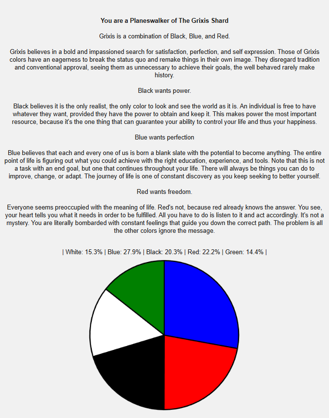 It means you’re pretty evil heh. Grixis iirc is like dominating and overwhelming power