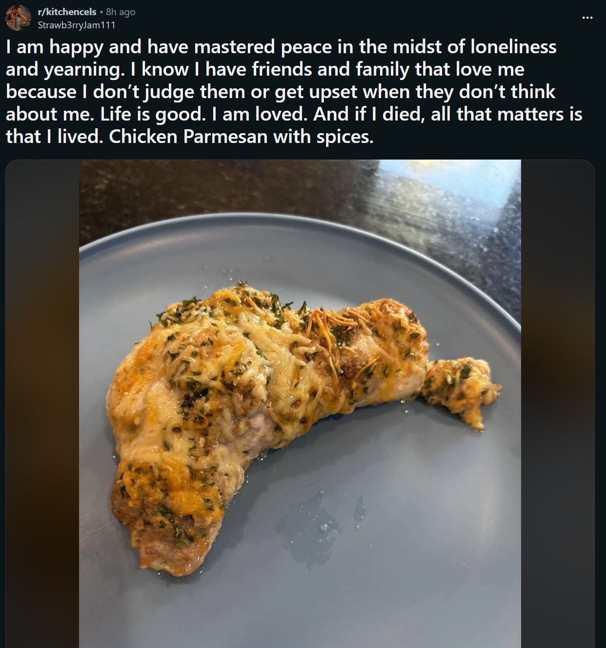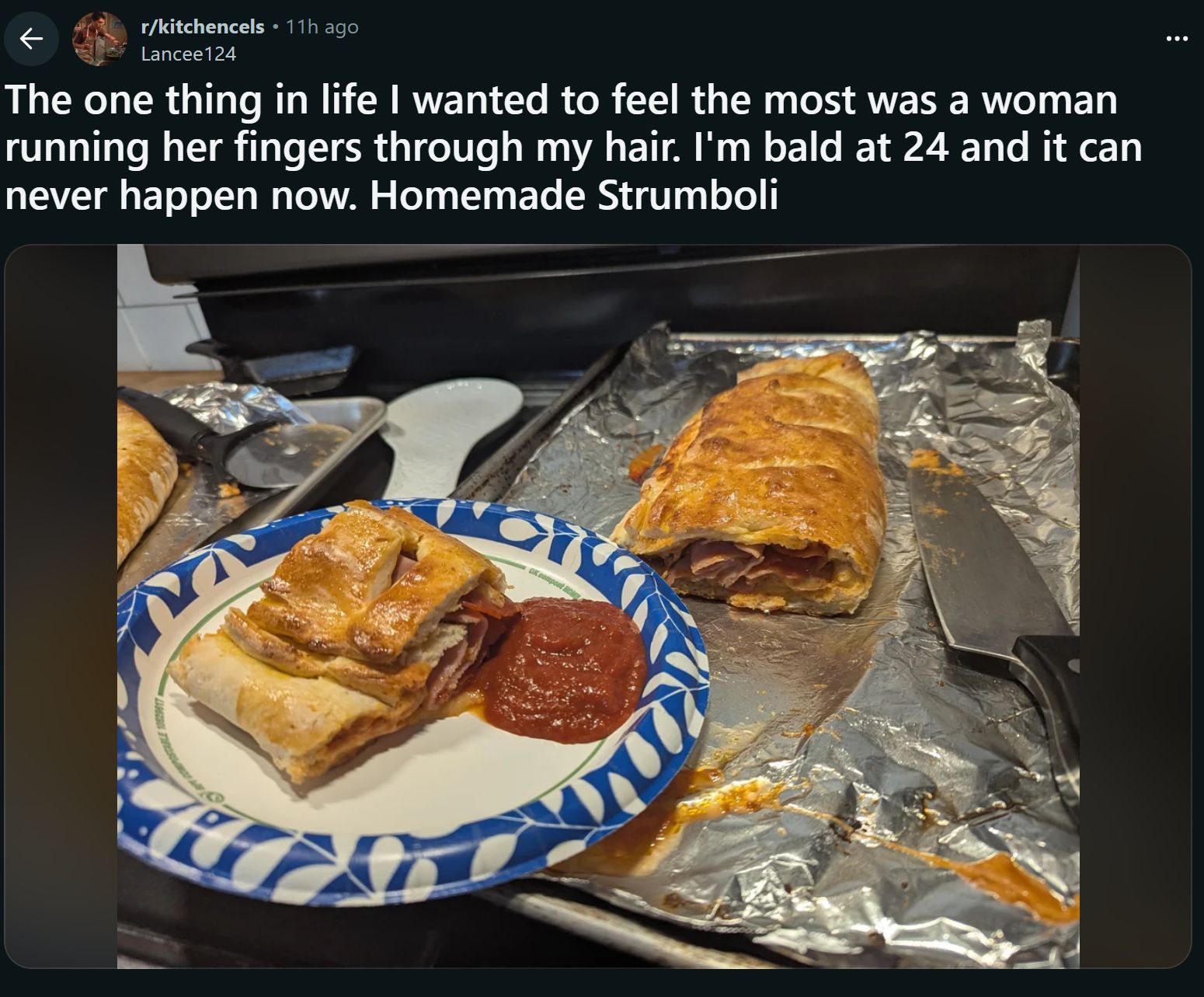 >>34029089NTAKitchencels is one of the few places that have ever made me do pic related in the past decade.Not even because the community itself shares really bad stuff, but because it's clear everyone there is ill prepared for it and making it a hobby to vent there in the reddit way with no critical pushback in an Eco chamber that will be of no help. I've been getting bullied since age 4 so I got used to it but some of those guys aren't gonna make it.