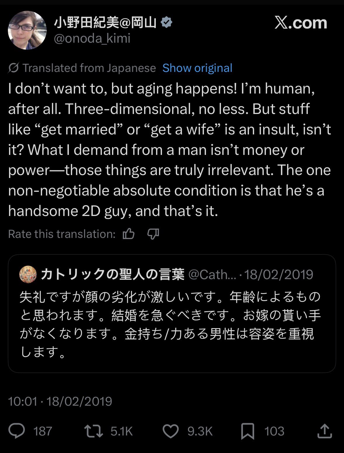 >>34028999The video itself isn't really relevant, it could be totally made up for all it matters, the main point is how the thousands of women in the comments are (near universally) reacting to it.