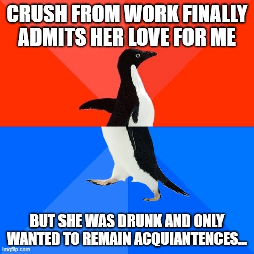 I missed my chance to to prove I'm not a backup option. Now even when girls like me it doesn't feel special. They simply are running out of time and options or they would keep chasing the same few guys forever.