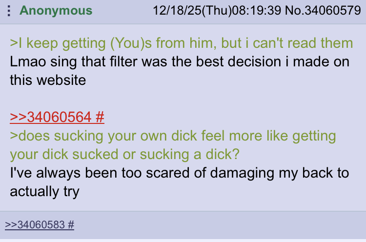 >>34081251That's not how filtering works, newfag.