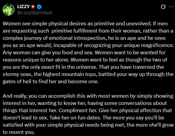 >>34171264>4th thing is men having emotional maturity to truely be vulnerable with women and it creates a safe space for both of them.