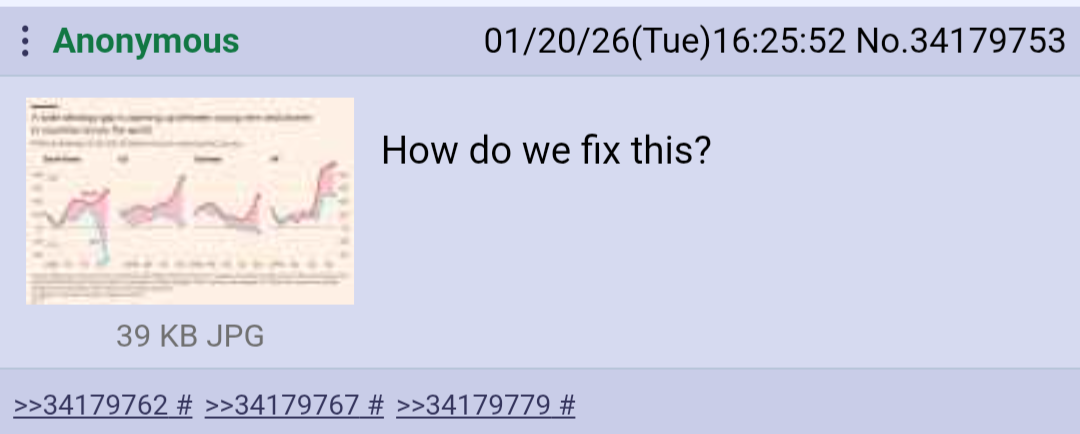 >>34179785>that copypastIt would be true if zoomers weren't completely brainwashed.They will happily marry an OF girl with triple-digit bodycount since they never knew anything better.A girl who waits for marriage is just as much of a fantasy creature to them as elves and mermaids.