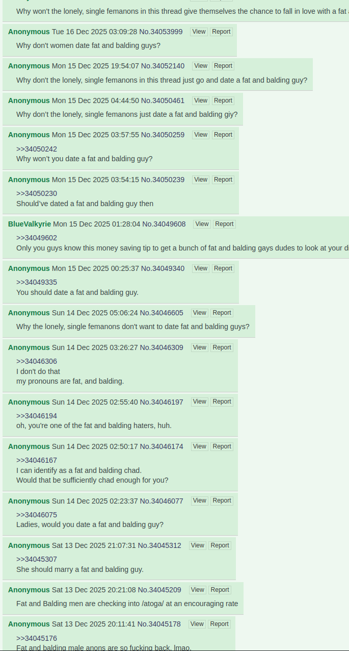 >>34186192Femanons, would you date a fat and balding guy?