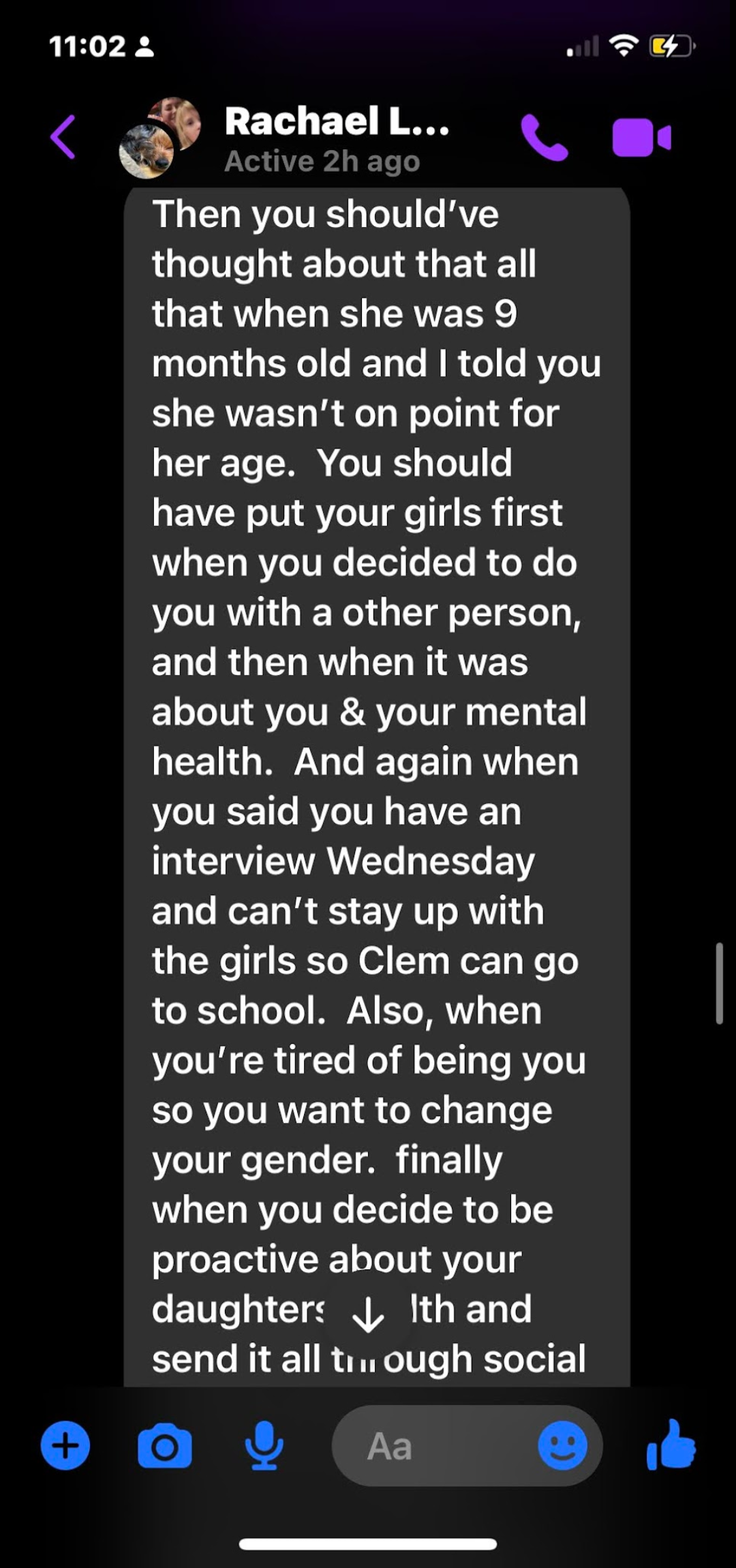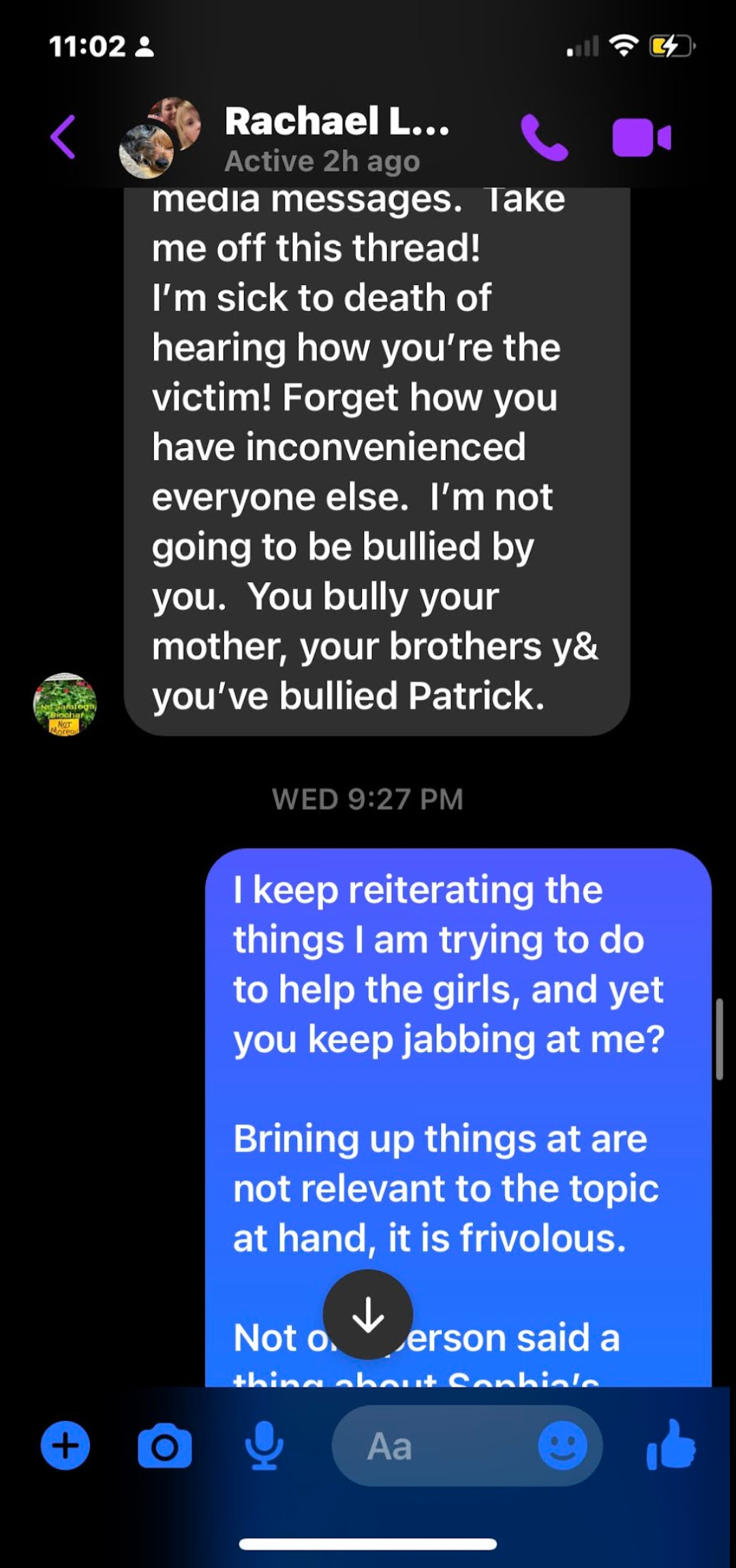 this the rest of his moms message from this conversition I try and defend myself and I am still treated badly I think this must be the reason This is not recent but my girlfriend told me it counts
