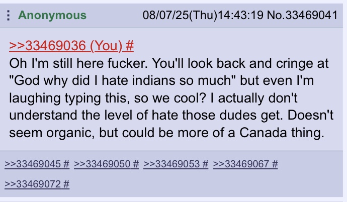 >>34232626>Toronto pajeet obsessed with BBC>calls other anons gayHmm…