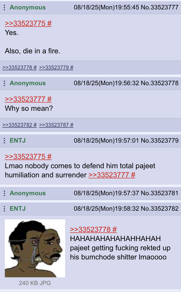 >jeet spammer doxxed>thread traffic suddenly disappearsThanks ENTJ doing gods work mate run that little curryshitter off the board back to British India