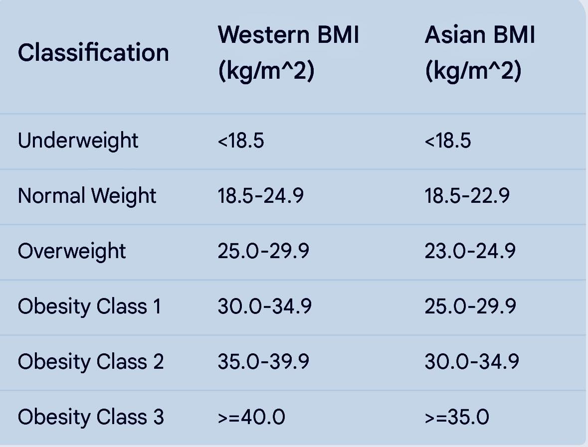 >>34244644The Asian BMI range for normal was reduced because Asians have higher BF% at lower BMI and are therefore at higher risk of heart disease. A 22 BMI is very average for a physically active person.