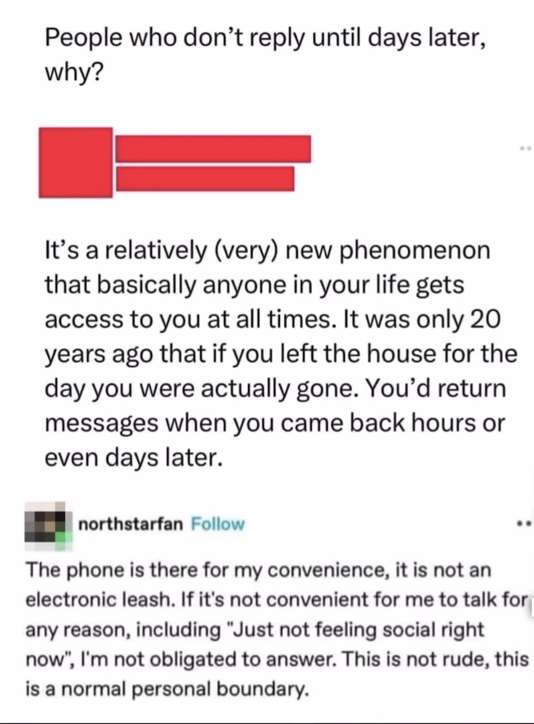 >>34305421My parents always threaten to call the police on me if I don't talk to them like once a week and its getting to the point where I'd rather not talk to them at all and I'd enjoy it if they didn't waste a public servant's time. I also don't particularly like the idea of the police coming and knocking on my door in the middle of the night just to tell me to call my parents.