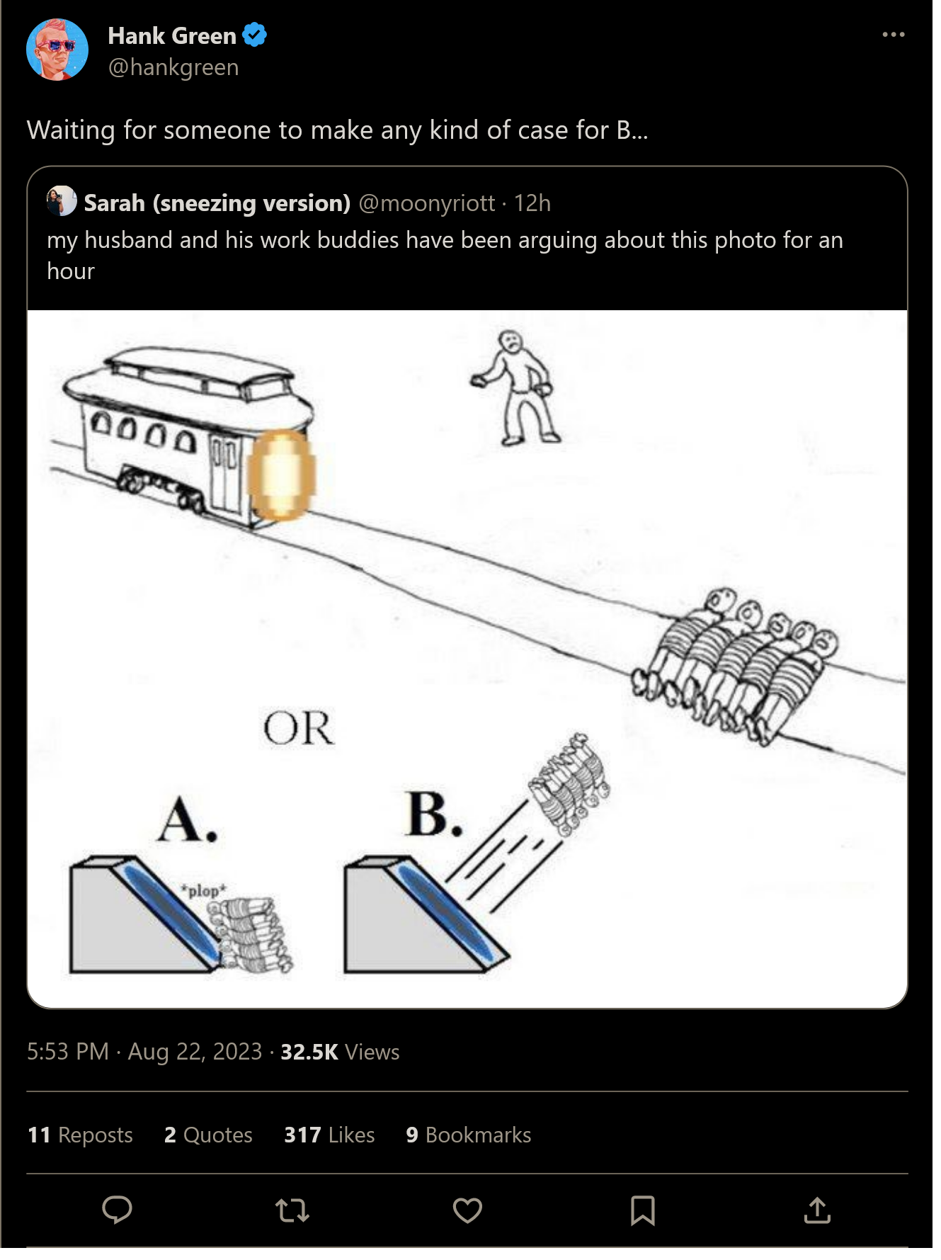 M, I don't even know what this picture is meant to signify, but how is B going to happen lol