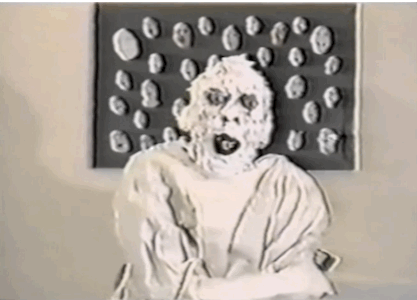No, just my own thoughts. That's what she paints on the walls of my mind.