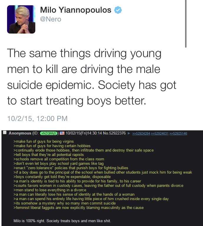 >>34323280"muh toxic masculinity" is a social construct and it is the exact inverse of the problem. It's toxic femininity that always destroys societies since time immemorial.Watch Bannon's movie Generation Zero. Read Strauss & Howe generational theory.Read Fate of Empires.Read Aristotle.Women should never be allowed to vote or make decisions. History bears this out time and time again (see above). We are living through the part of the anacyclosis cycle where men slowly wake up and remember>ohhhh right, women are retards who can't physically defend themselves, right right right ok>I'm supposed to protect them and my children by telling them both to shut the fuck up and being scarily hypercompetent at everything like my grandfatherand then they cull all the r-selected losers from society.