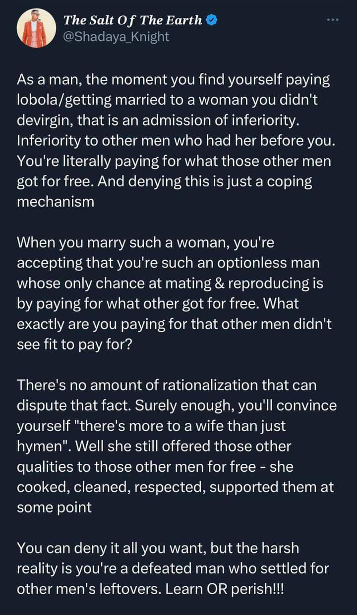 It's reality. If you go overseas you can find a woman that's with you to escape her circumstances, but will have a low/zero bodycount and be a good wife to you. Or you can stay domestic and get a woman that likely already has kids and/or a massive bodycount. The older you get, the more your opportunities and choices dwindle.
