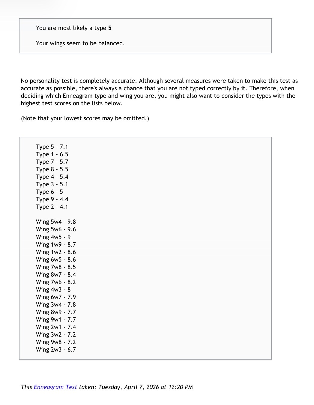 >>34412587I usually don't like personality tests because the results always feel so polarizing and unsubstantiated, but this one seemed pretty comprehensive for so few questions.
