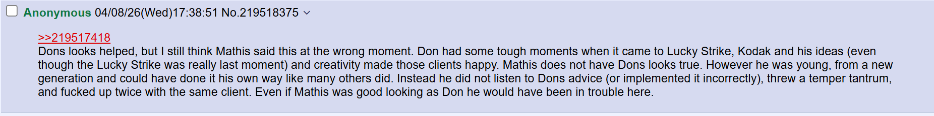 I had meant to thank an anon on /tv/ from pic related. The bit about being young, from a different generation, and doing things your own way as others have and others will really moved me. You have to succeed in your own way. Many people have before.