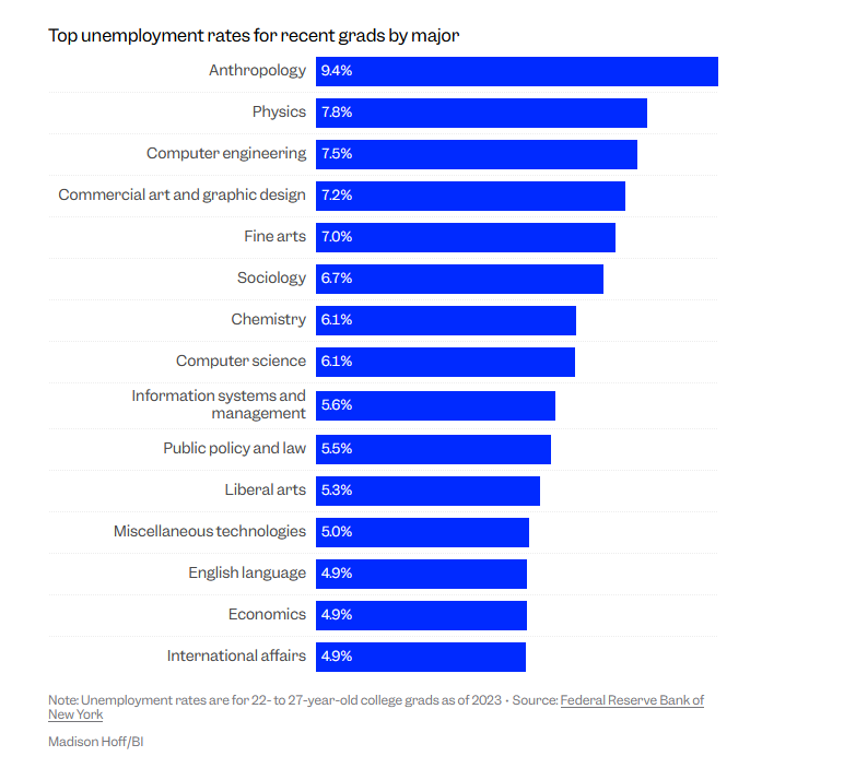 >>34428742FACT: Only about 25% of college graduates wind up working in the same field as their majors.