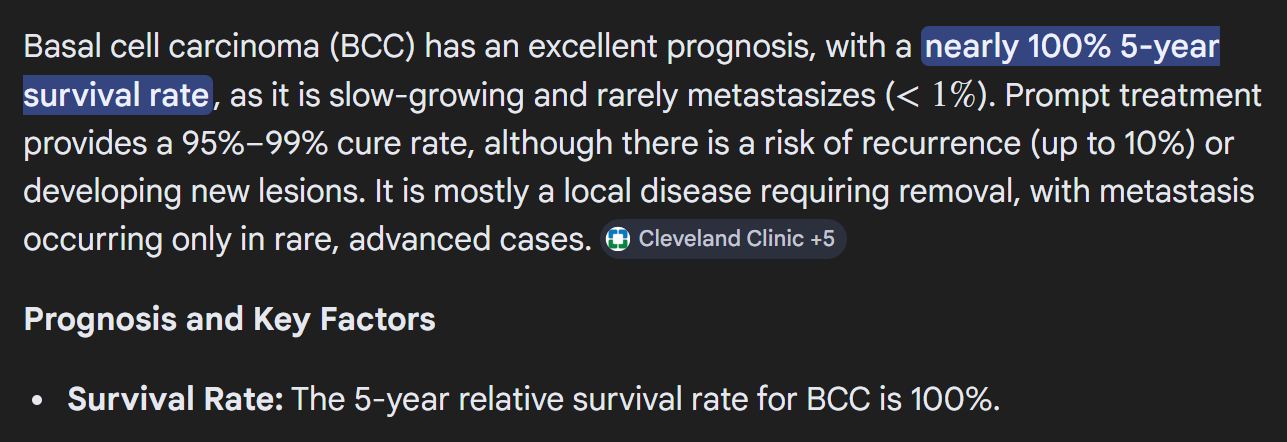 wassup /fit/my grandma has a confirmed basal cell carcinoma on her nose and doctors want to perform an excision which would mean a big part of her nose is gone and would need plastic reconstructionis there anything i can do to heal her basal cell carcinoma without her going under the knife?thank youimage for reference about what would need to happen and reconstruction