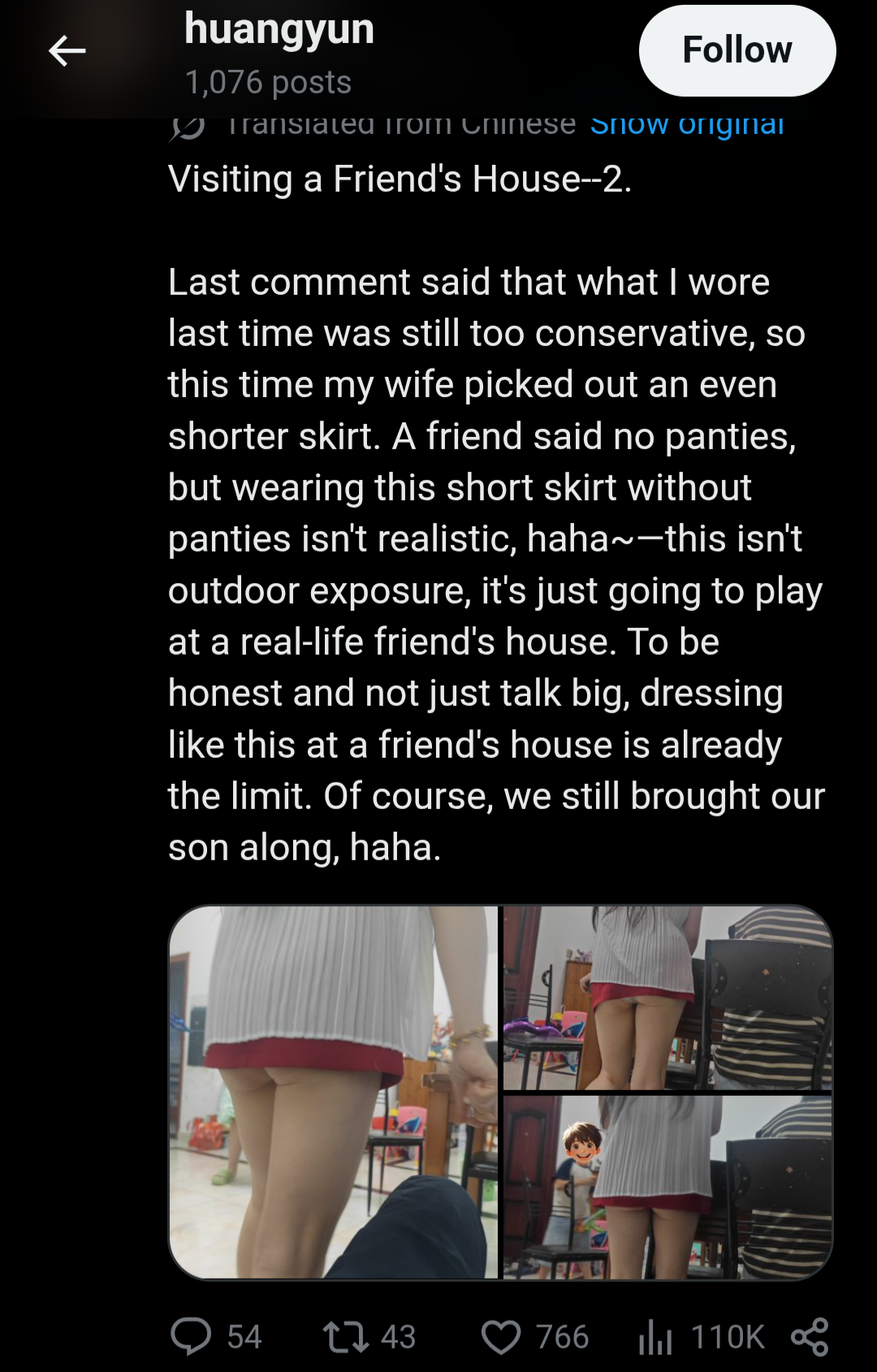 >>34455543right the prose are poor, but the story is about a mom consistently exposing her body to her son. The dad takes all the pics in public and at home. There is even a few pics of the mom sleeping naked in front of the boyI think this boy will grow and and realize what was going on. Unless his mom is really good at acting like a retarded farmer