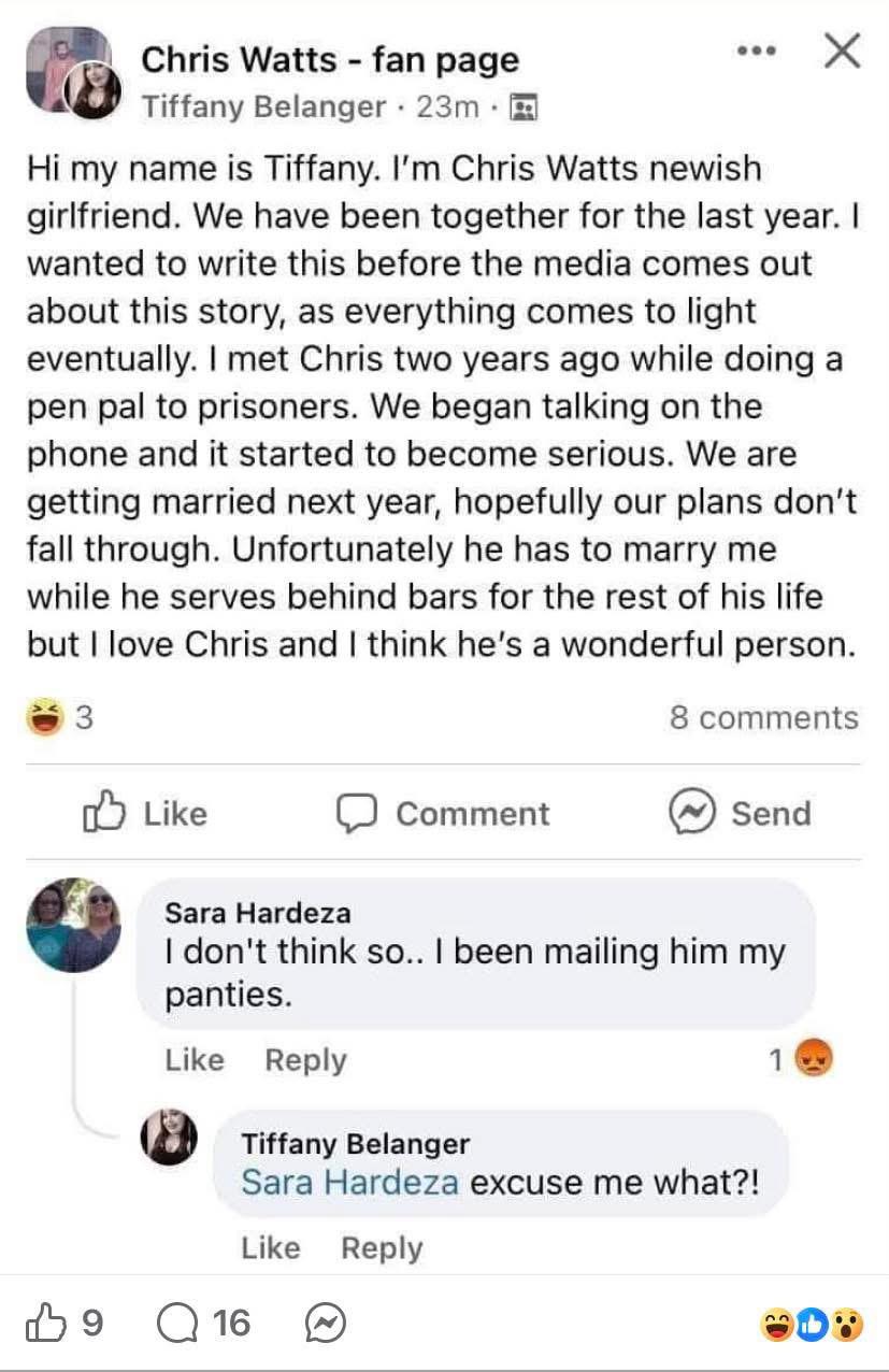 >>34453736Some woman who got murdered (along with the kids) by her retarded husband. /tv/ loves the Watts case.