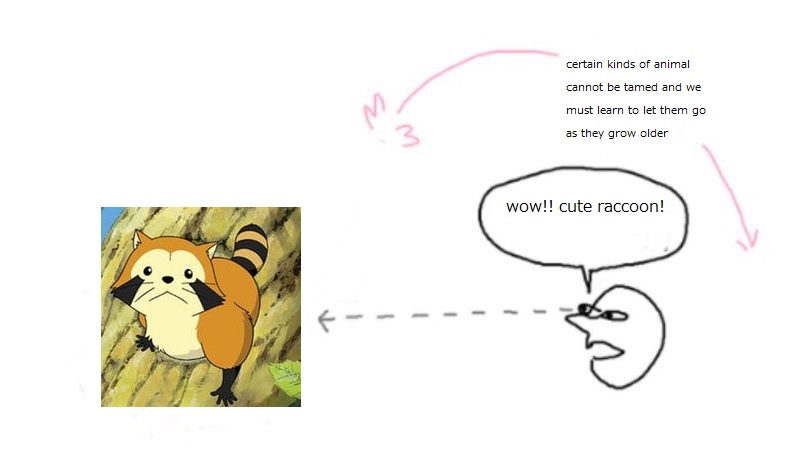 >>5095332>https://en.wikipedia.org/wiki/Rascal_the_Raccoon>The series revolves around a young boy who decided to provide shelter to a raccoon that was discovered by a hunter. As the boy attempted to domesticate the wild animal as part of his family, he soon realized through trials and tribulations that his efforts were futile and decided to release Rascal back into the wild.>Raccoons are an invasive species in Japan and there is evidence that Rascal the Raccoon has contributed enormously to the problem of invasive raccoons in Japan.>Although Rascal the Raccoon's storyline revolves around the difficulties of taking in a raccoon as a pet, Japanese citizens became inspired to import raccoons into the country as exotic pets, leading to unforeseen consequences.i'm sure everyone itt is familiar with the story but it's my favorite example of catastrophically missing the point