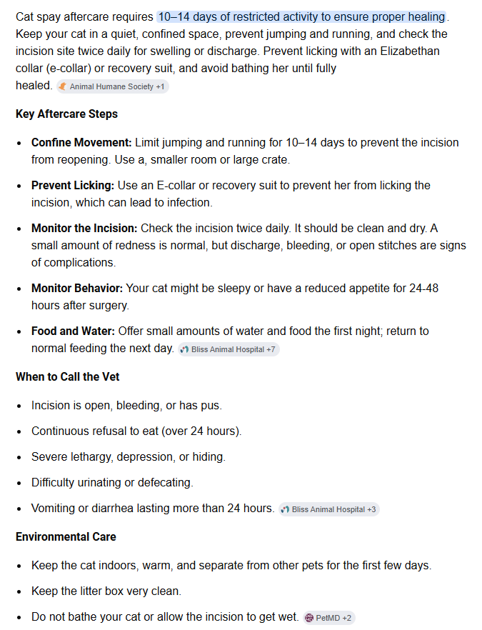 >>5117586probably still wonked out on the anesthesia. the place you took her to should have given you aftercare instructions, among those being limit food to about half what they would normally eat the first night and resume regular feeding tomorrow.It's a hell of a surgery for a female cat (a lot of times with males they dont even need stitches), so it's a gonna take some time to get back to normal. if she's still fucked up tomorrow morning take her to a vet.