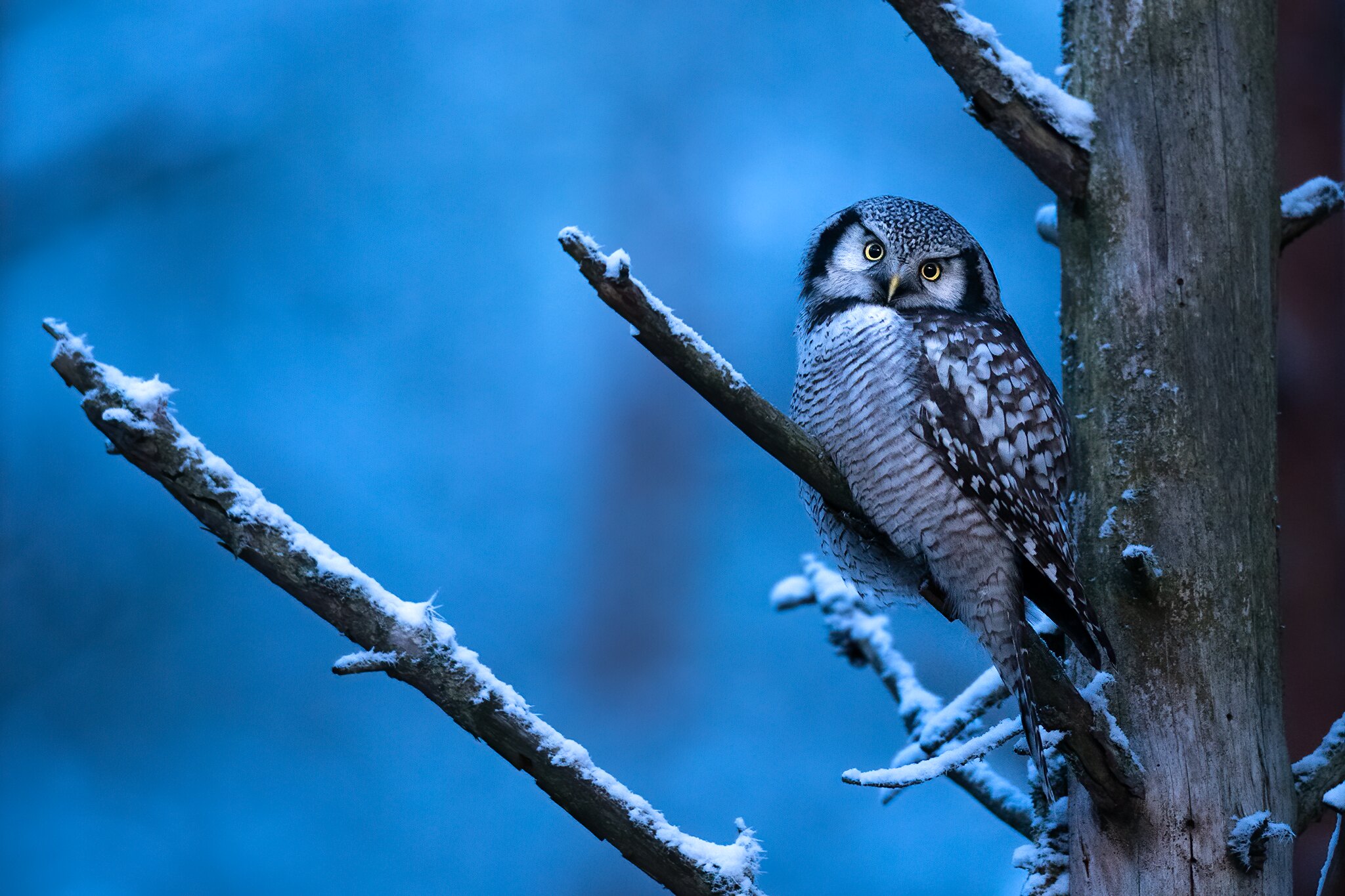 >>4965516Surnia Ulula.A Hawk Owl.Its not nocturnal like most owls.