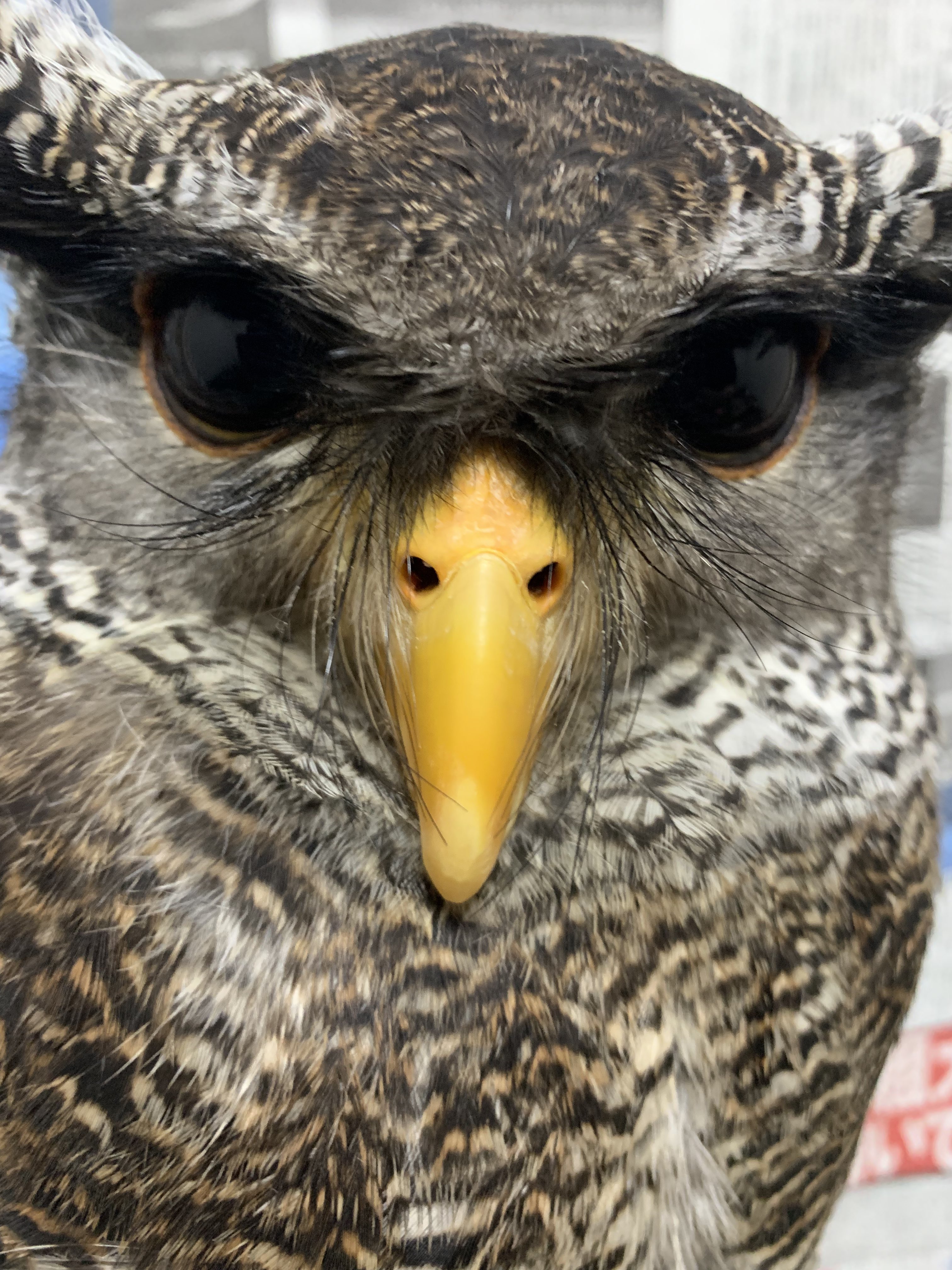 Aw man OP. You opened up some wounds. 2 weeks ago was walking around our property when I saw what I thought to be a cat sitting looking at squirrels. Turned out to be this girl. She was clearly hurt so I took her to bird vet asap. Not sure if they had to put her down but we were surprised to learn she was still alive when we got there. Truly Alien species.