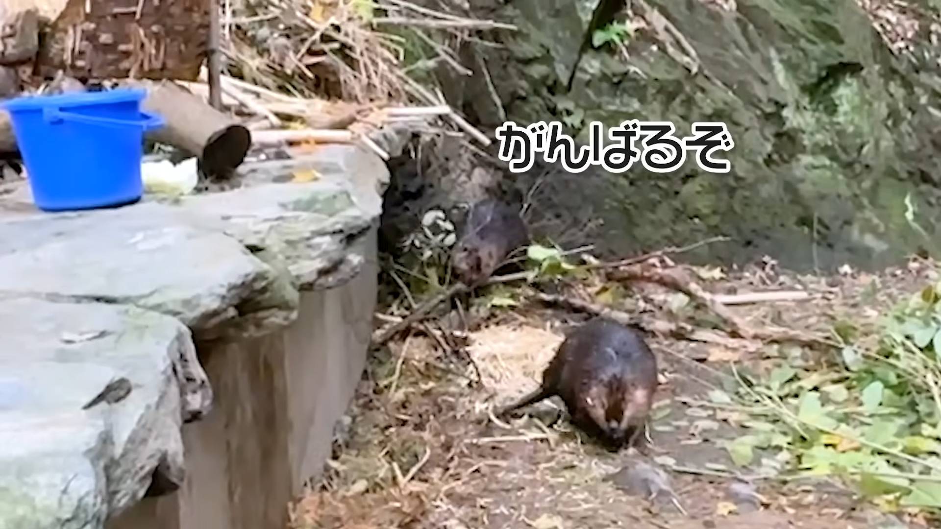 The beaver family at Nagasaki Biopark have been trying to build a ramp up this corner so they can escape their enclosure. Zookeepers have to clear it everyday.