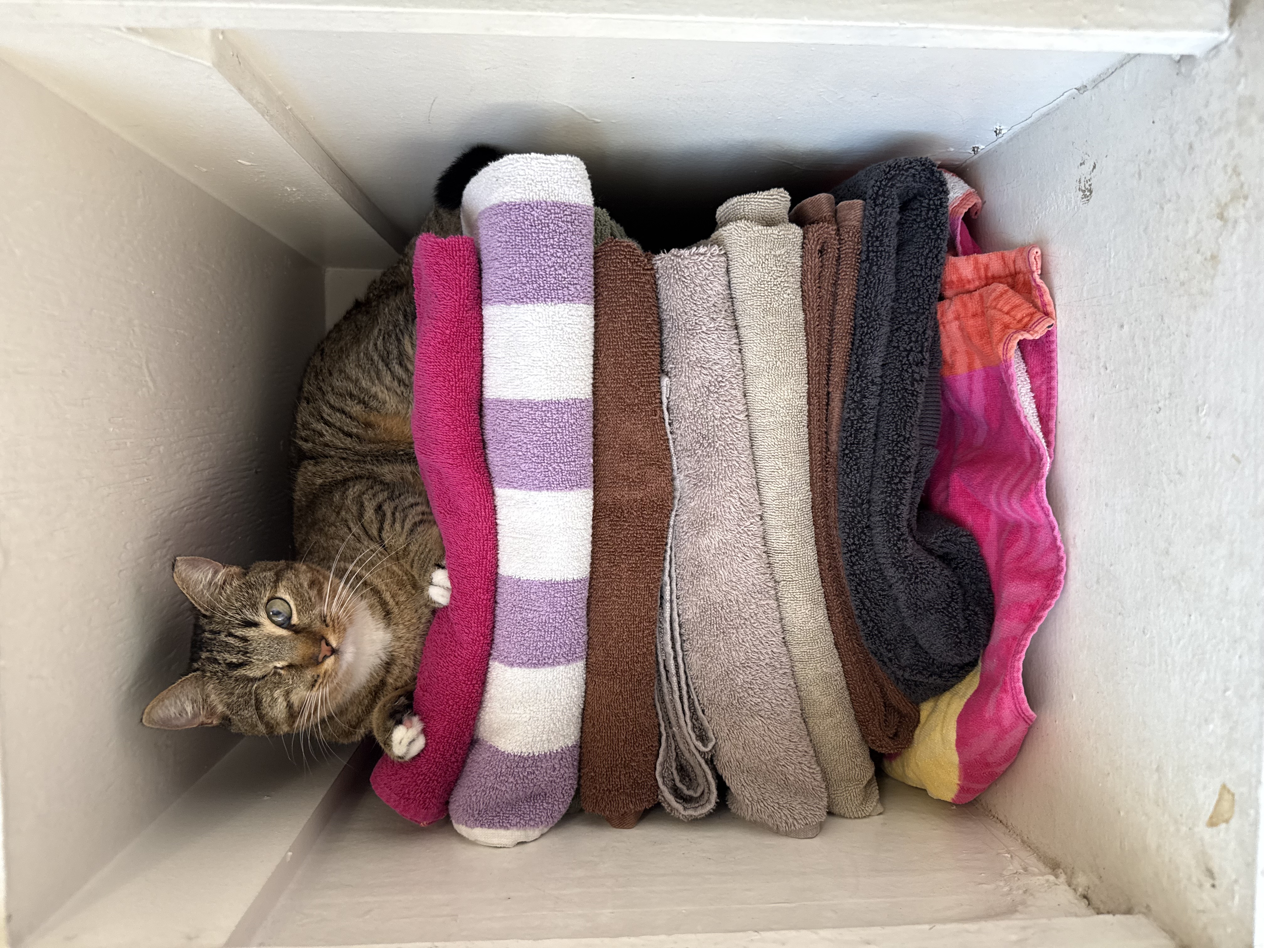 >cat escape outside>can't find her>get a call in the afternoon>she ended up in an apartment building two streets away, on the fifth floor only accessible through an elevatorThe weirdest part is that it's not the first time something like that happened, she always ends up in the weirdest places.