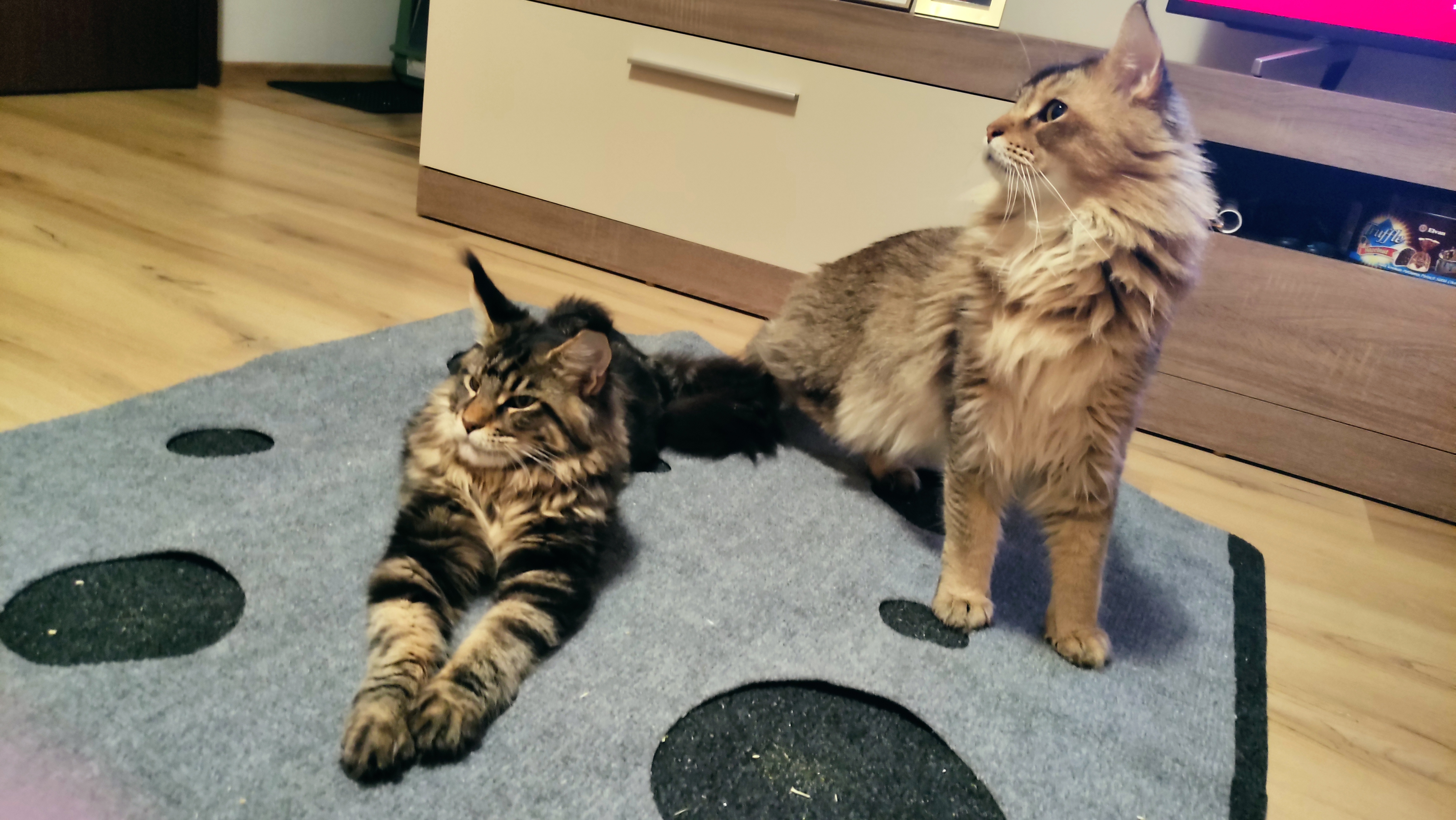 Is it normal for cats to sleep in shifts and stare at the window in shifts?I'm cat sitting for my grandma while she's on a trip, and her cats take turns napping at the bedroom cat tower while the other is by the living room window.