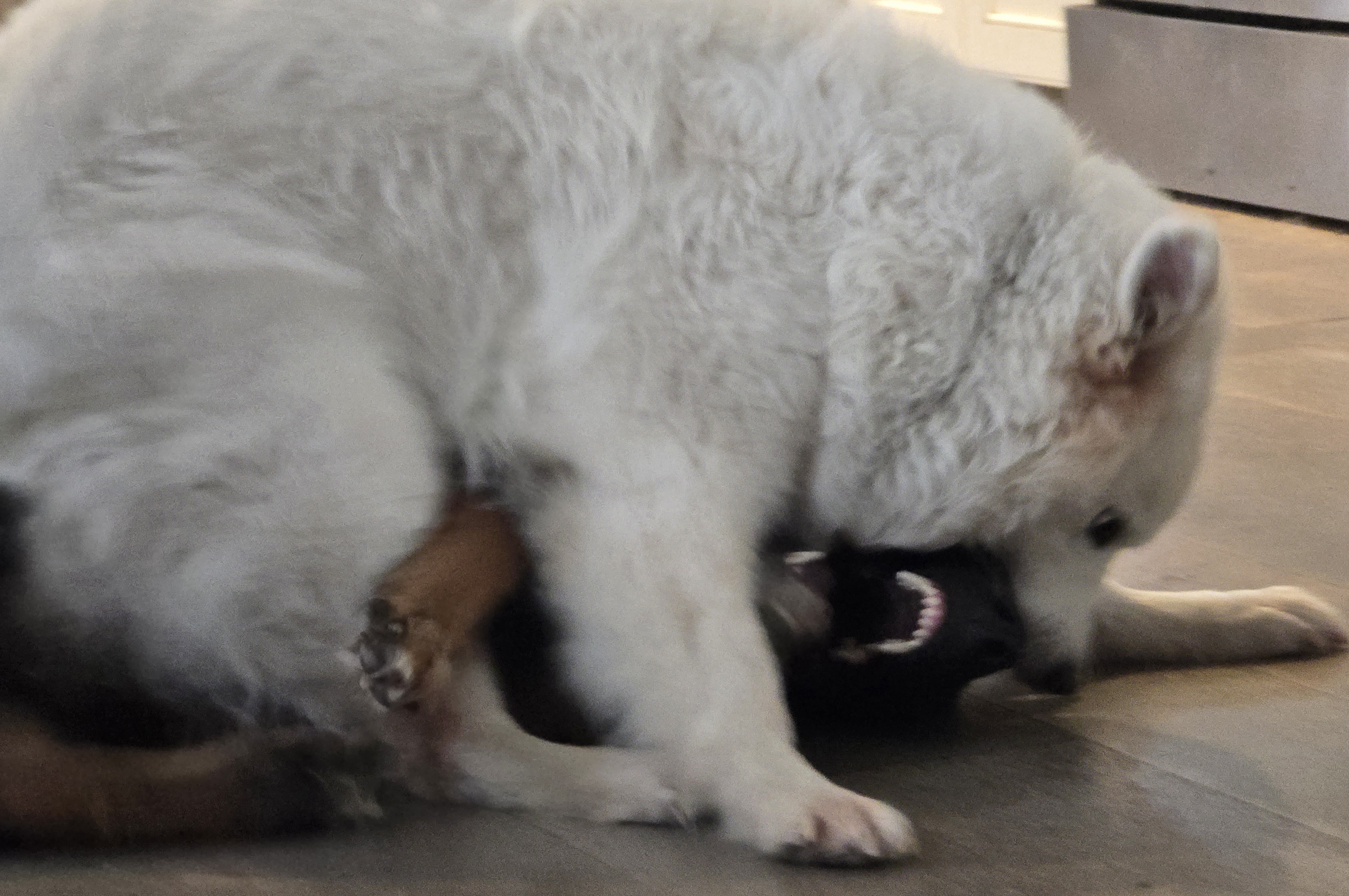 a husky just flew over my puppy's balls!