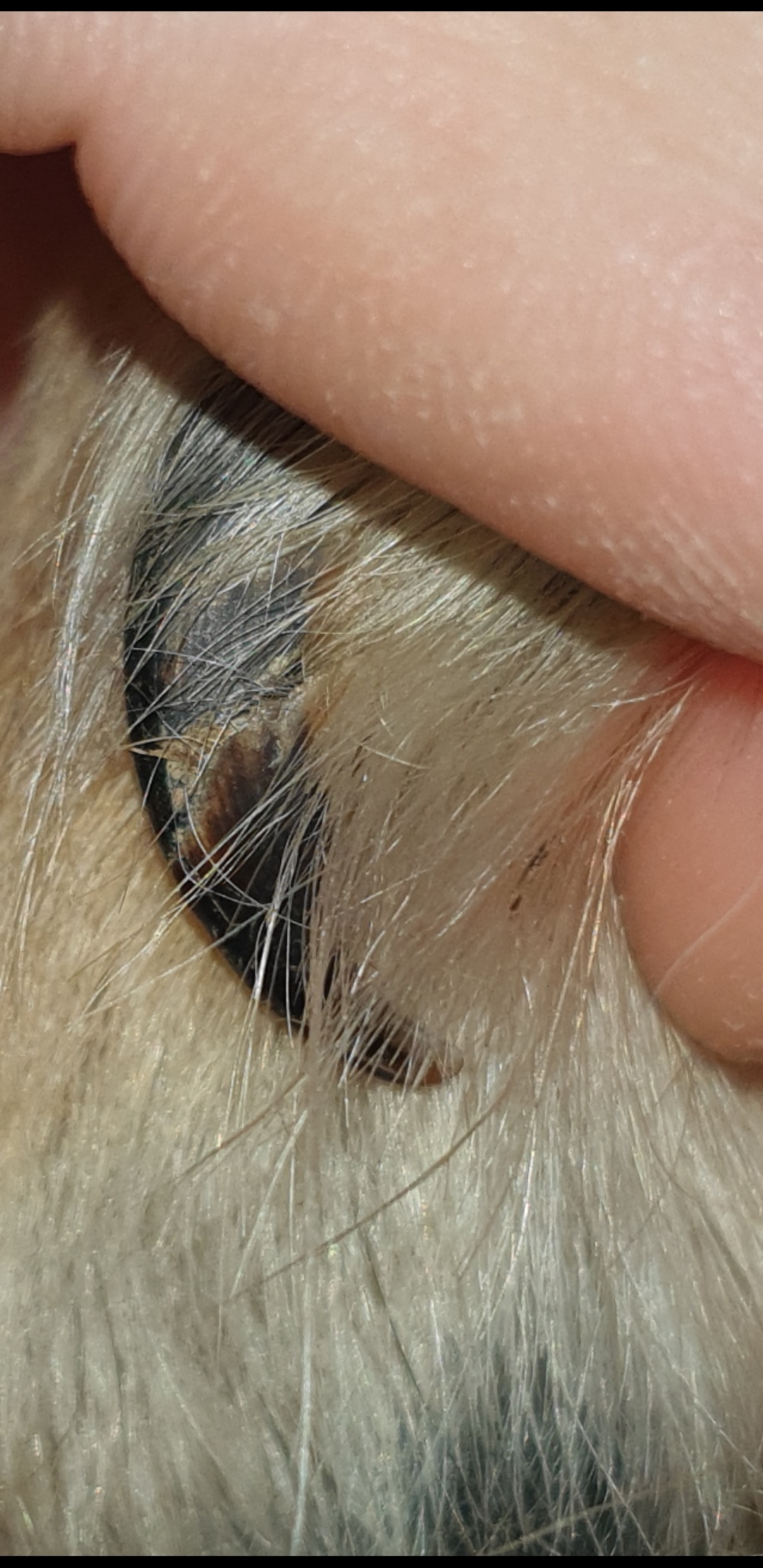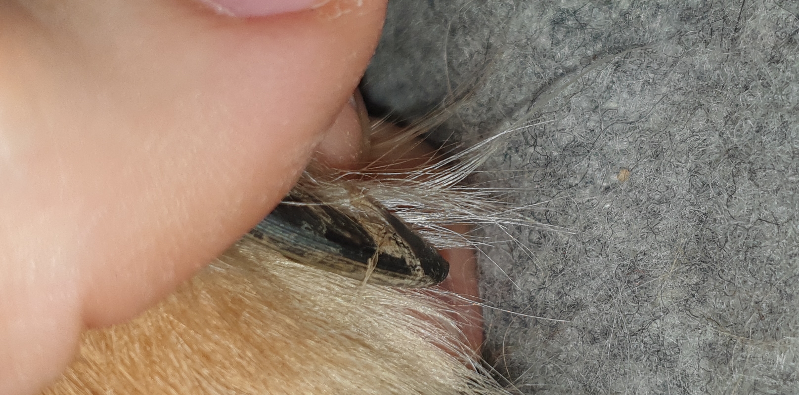 >>5060706Can you gently pull it off? Looks like it is probably below the quick, so it should just be a little uncomfortable, but not painful for dog.
