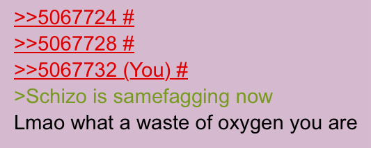 catschizo aka kekke is an ocd/autist who addicted to spamming like a junkie is addicted to heroin. he has dedicated to life to spamming 4chan. he does nothing else, every waking hour, every day. for 10 years straight. he does it on many boards not just this one. he doesn't even have cat. he just reads these boards all day and knows what will cause seething arguments and give him (you)s. one person can make ALOT of posts per day. one person who's done nothing but read these boards for 10 years can make alot of enticing bait on every board.