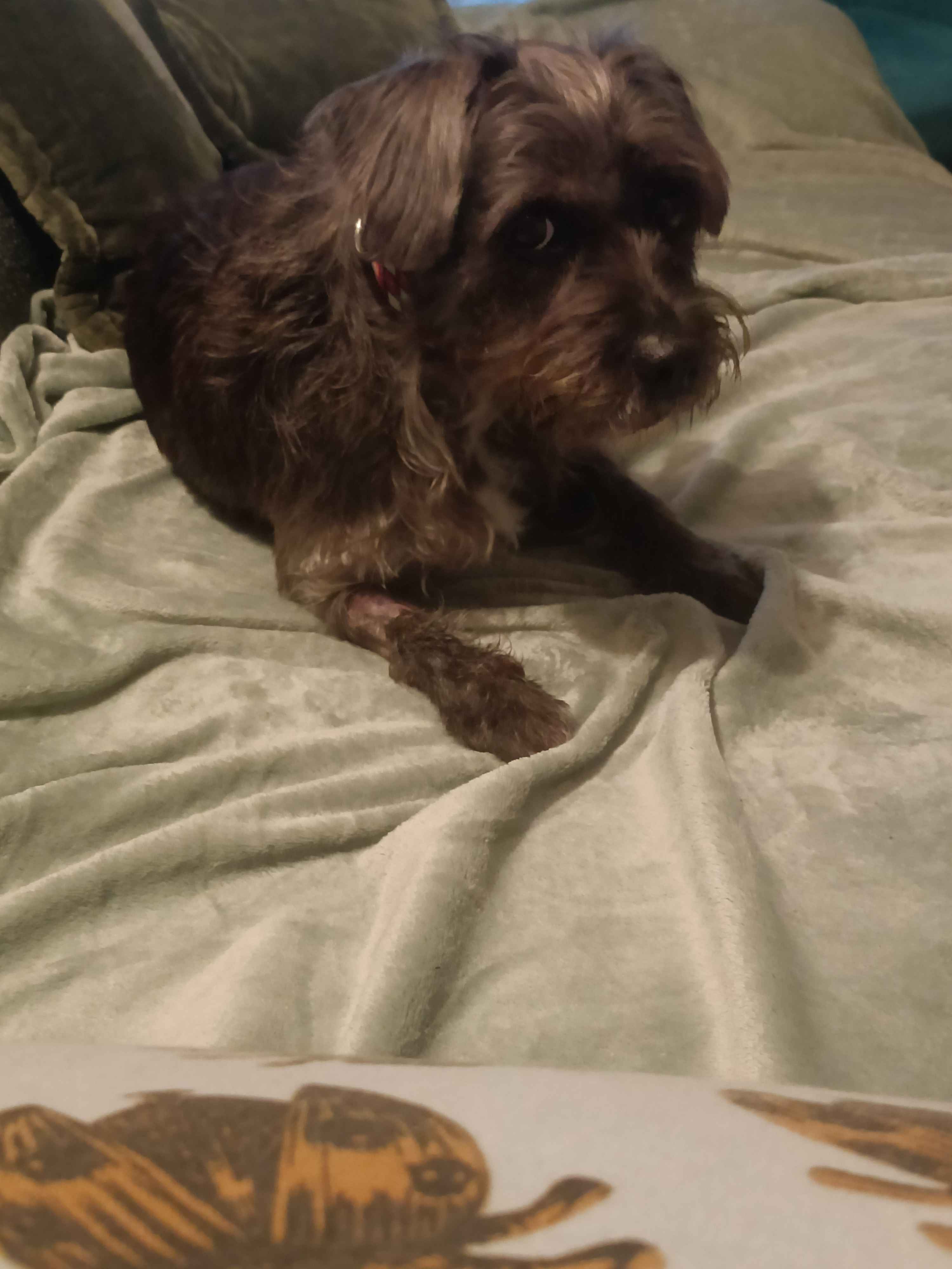 Ate the couch, then puked kibble on her purse