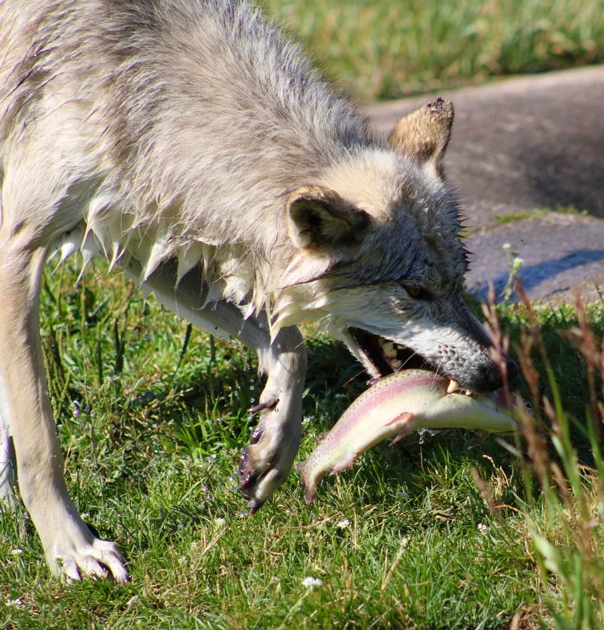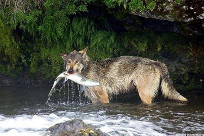 Wolves fish with their mouths.