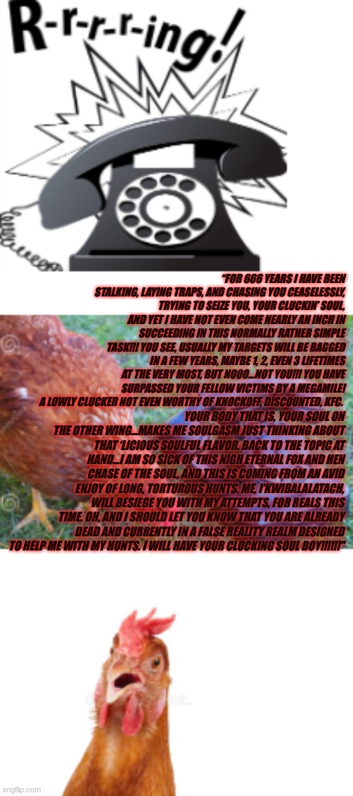 Now, chickens, most people should eat chicken. They are genuinely worthless animals somewhat below a cat. Basically tastier vermin. They can look cute for youtube but in real life they are horrid reptilian automatons that exist solely so ensouled mammals can have something to eat. Bonus: Eggs.