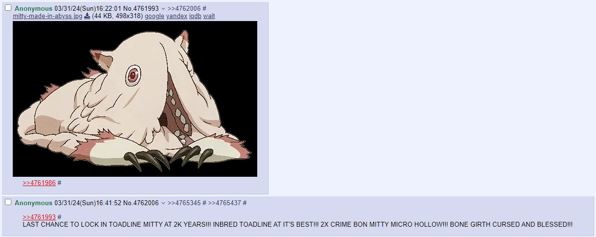 >>5099502I bet you Mitty would live longer than the average toadline tho