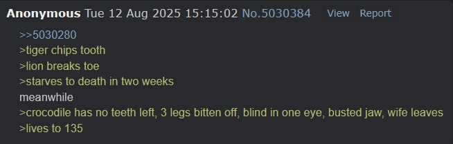 >>5095758A frog I can understand but to have such hubris as to think yourself above the majestic toad is unfathomable. Our amphibian friends have been here long before humanity, they had mastered evolution far before we came down from the tree tops and I dare say they'll be here long after we're gone too.