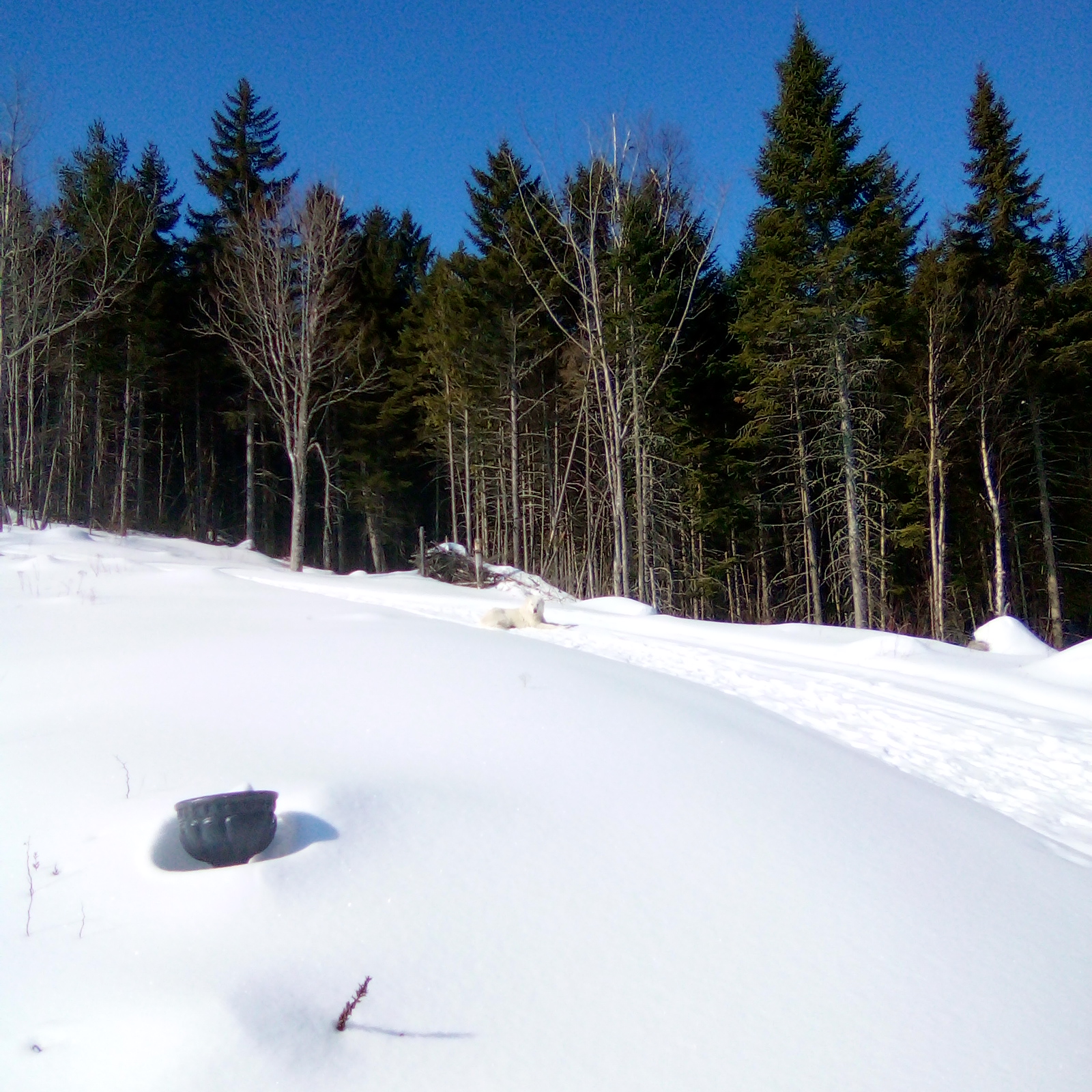 >>5103991She has been offically (as of this post) gone for 72 hours however i am reliably informed that is to be expected. This morning we had a dusting of snow and saw her tracks a few hundered meters away on the road, i expect her back since i have food, i put out heated water and i have her goat herd. >She is in heat>16 miles to the nearest paved road>Rural Maine inna Jackman area>Coywolf/Eastern Wolf is the only thing big enough to mate her inna Maine woods as she might kill smaller suitors>Gone three daysSo if she comes back what are my chances of having a litter of very interesting puppies in the near future?
