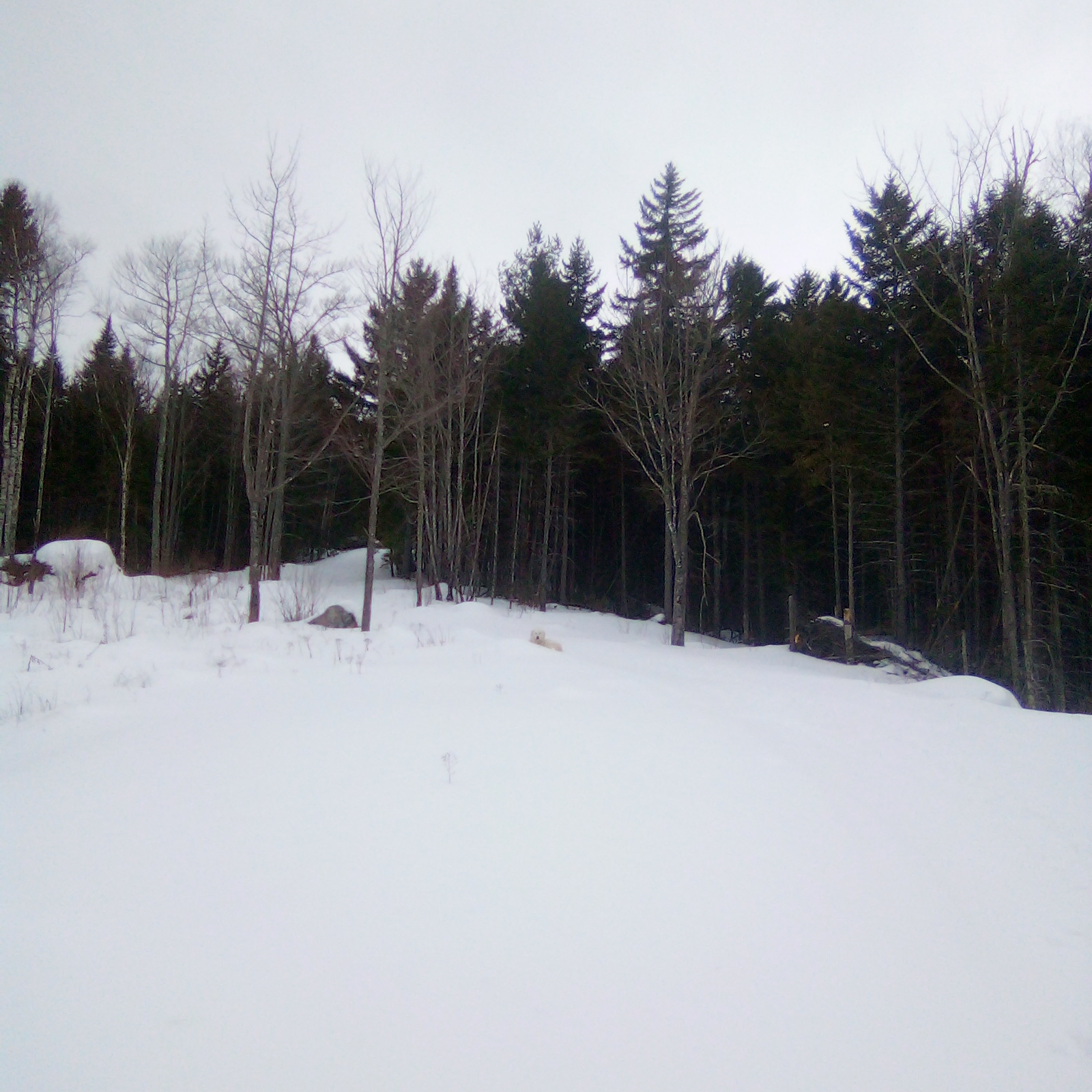 >Be OP inna woods in unincorporated Maine>Reread 'America's "New Wolf" by Gene Letourneau>Live exactly where he was talking about>Pure breed Maremmano know for running off inna woods for 3 days at a time is inna woods in heat>Regular Coyotes probably too small and scared to try to mate her>Local hunting lodge has 10 Coywolves hanging off a beam as a part of a local eradication project/contest and 'fuck you' to everyone who ignored Letourneau>Coywolves sort of legalish Grey area in Maine If she comes back which she probably will (the breed apparently refuses to stay inside or even under cover in sub zero temperatures so besides starving or getting killed she is OK) then if she gets knocked up i have some very interesting puppies don't i?For the record if anyone is questioning why i have this hound on short notice and obviously unprepared: I had no idea that i would have this dog 72 hours ago nor did i know what it was, it was a stroke of luck that she ended up with me. The owners selling the goats sprung it on us at the last moment as they were owned by their father who died and they were liquidating the farm, it seemed clear that if we didn't take it they would probably take it out back and shoot it. Since we have the proper environment for it and plan for a large goat herd (100+) over 125 acres in rural Maine the dog can work out really well assuming she survives the adjustment to a new location. If she doesn't come back it is possible she isn't dead, the previous owners say she was fed meat occasionally and they saw her chewing on a bobcat she killed as well a few hares so she may be able to hunt..... Fuck, i just realized something. People live me are the reason Coywolves exist aren't i?