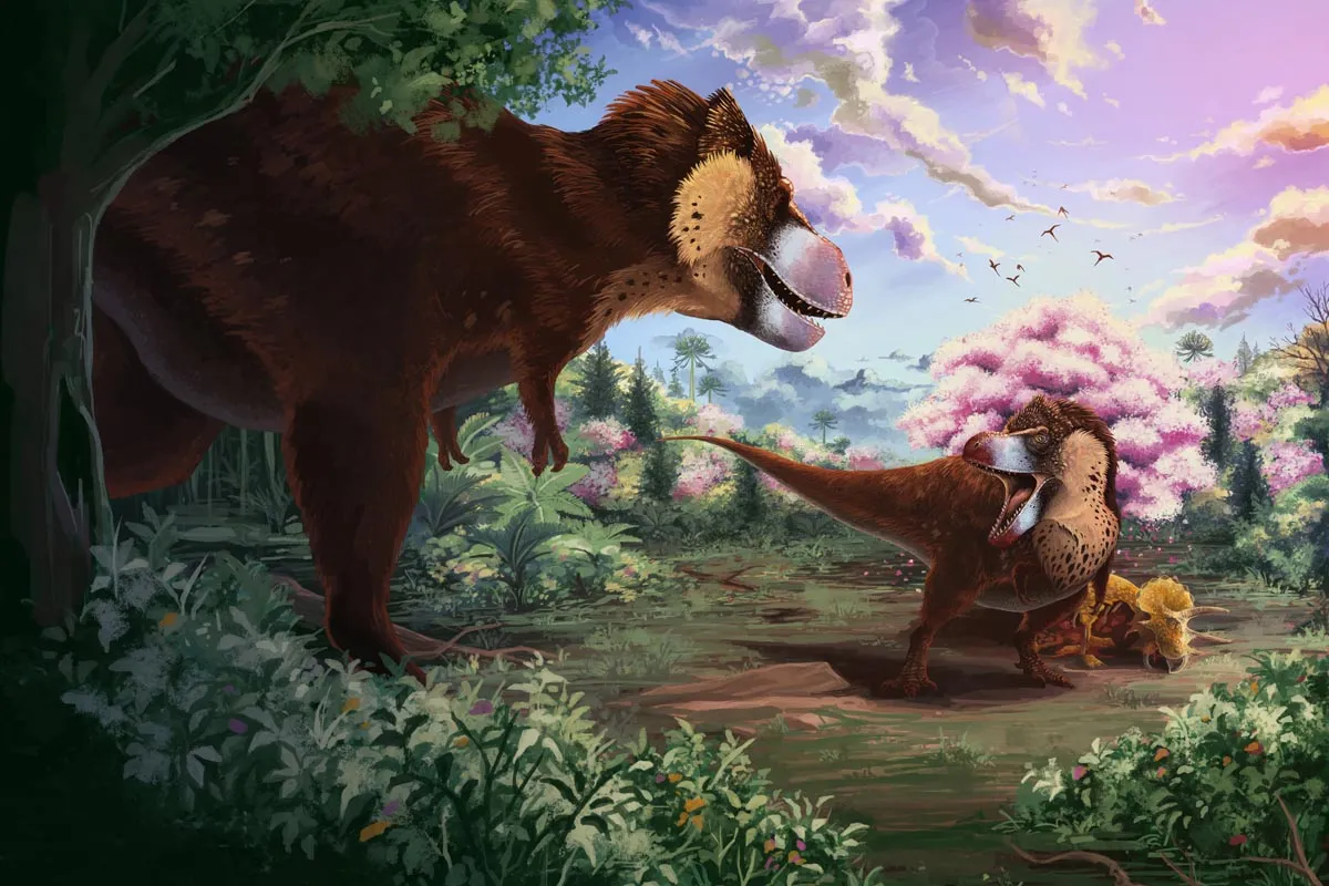Tyrannosaurs have always been illustrated alongside cherry blossoms, it's a very old and probably accurate depiction.
