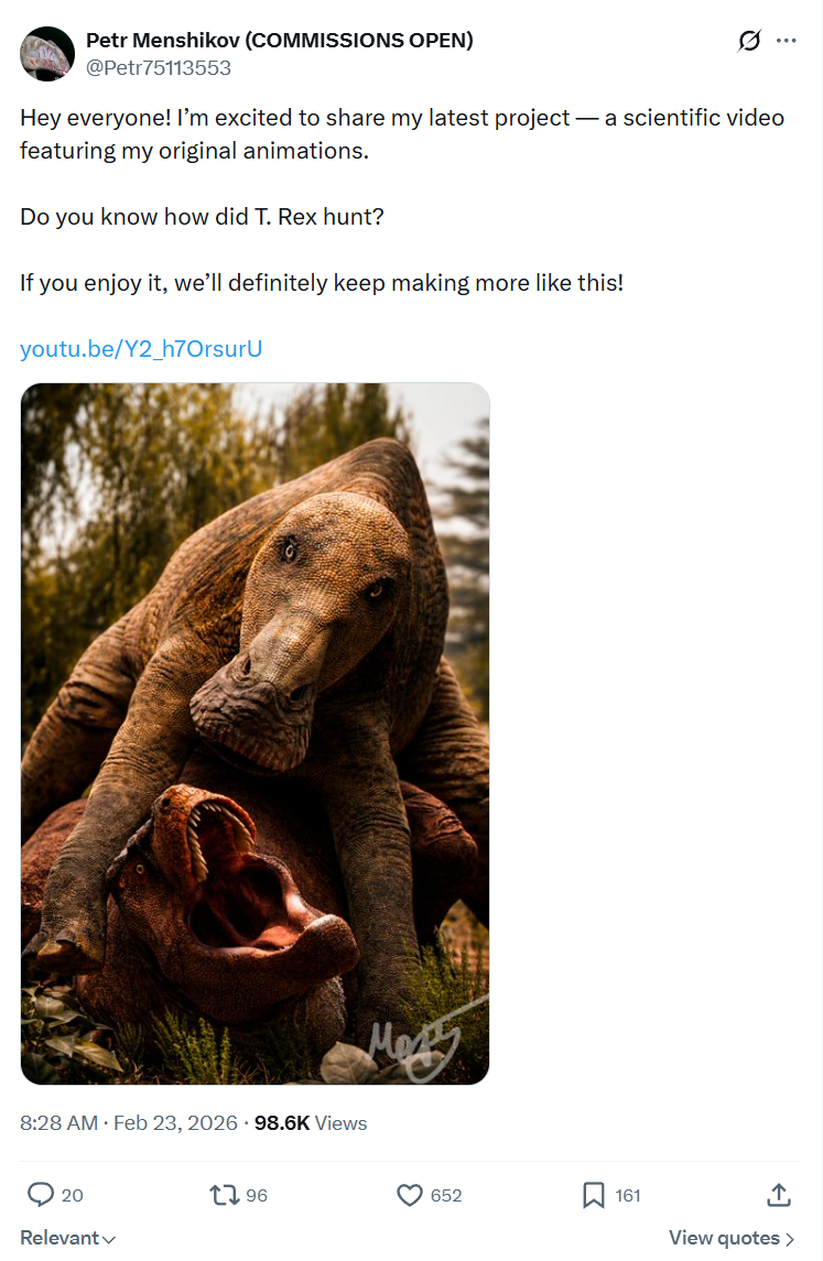 >>5107893People are incapable of being reasonable and always have to go to the other extreme. Two examples i can think of are:1: Oviraptor used to be portrayed as an egg thief because a fossil was misinterpreted, so now showing it eating eggs is hecking inaccurate even to it obviously did from time to time2: It used to be a meme that Smilodon made terror birds go extinct, so now terror birds have to win 10/10 times against Smilodon. If you show the Smilodon winning in a fight it is hecking inaccurate regardless of the context, even tho it obviously happened from time to time.If anyone can think of other examples please share them